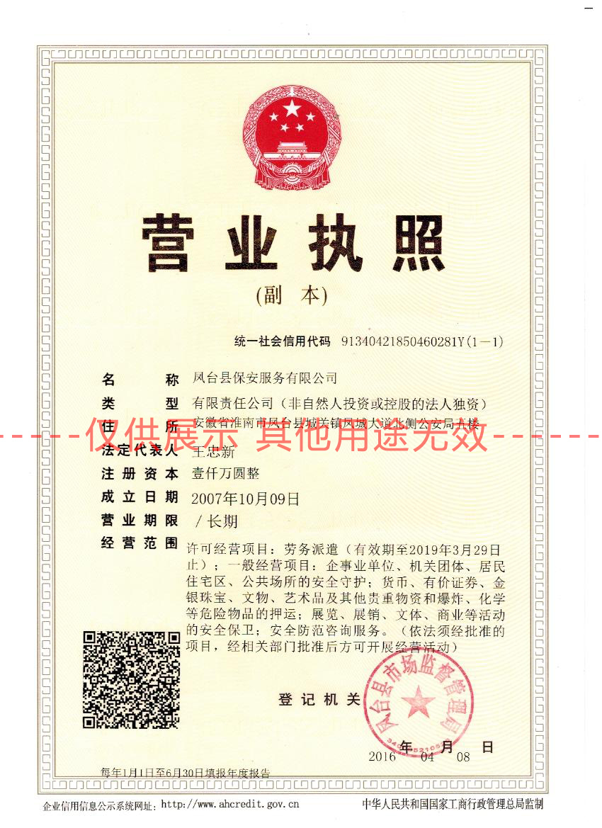 齊備的國家資質(zhì)認證保安服務許可證